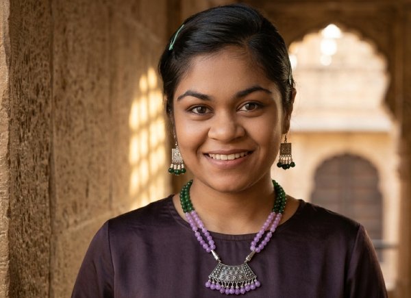 This subtle piece of jewelry is ideal for get-togethers and parties. The unique combination of glass beads in mauve and green , enhanced by metallic inserts adds to the glitz of this jewellery set. Teamed with a light weight pair of earrings is all you need to finish your party look.